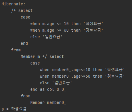JPQL도 SELECT 문에 CASE 문을 사용할 수 있다.