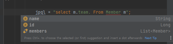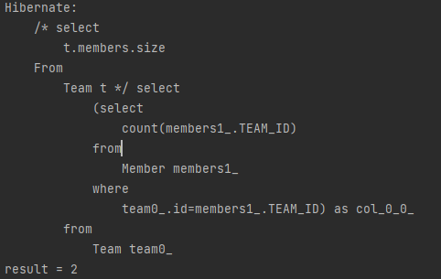 실제로 JPQL은 단순히 Member에 있는 team을 조회하는 것일 뿐인데, 묵시적으로 조인이 발생하게 된다.