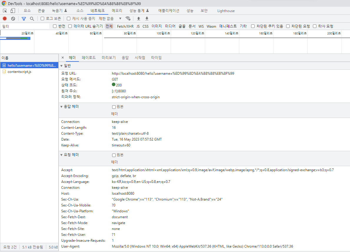 http://localhost:8080/hello?username=홍길동