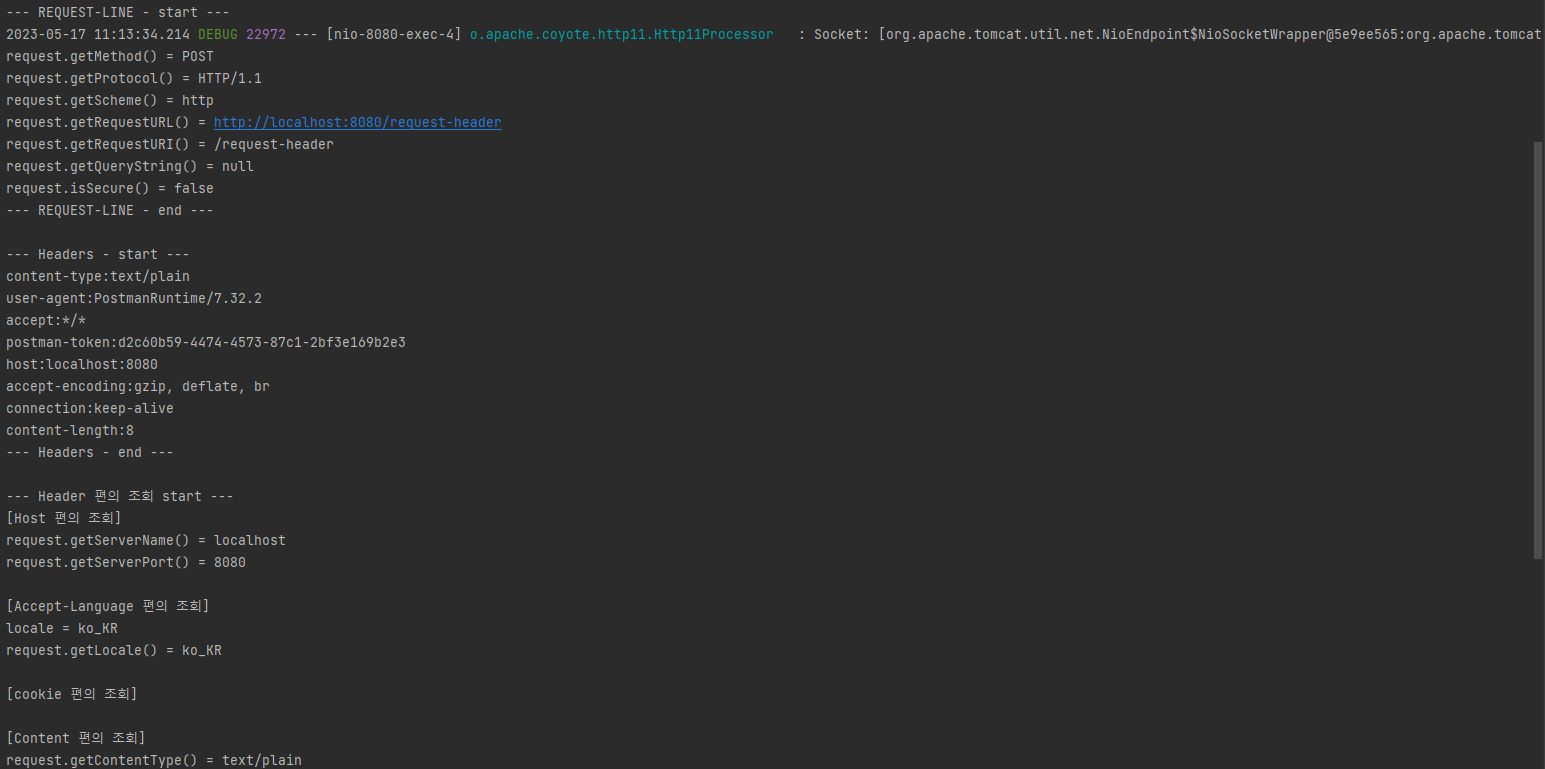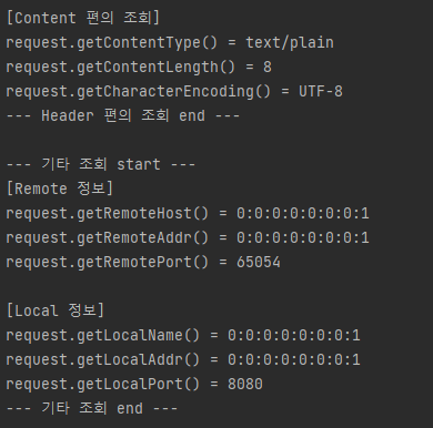 HttpServletRequest를 사용하면 다음과 같은 HTTP 요청 메시지를 편리하게 조회할 수 있다.