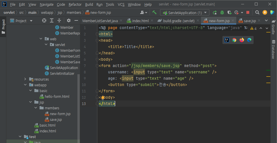+ 버튼을 눌러준 후 *.jsp 를 추가해주면 된다.
