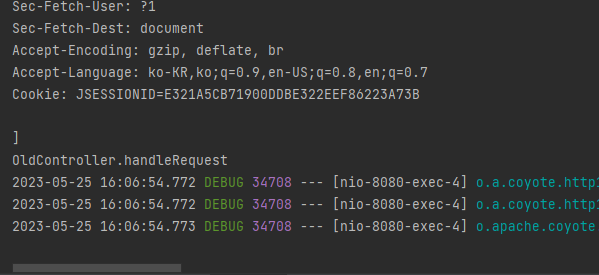 콘솔에 OldController.handleRequest 가 출력되었으니 정상적으로 작동했다.