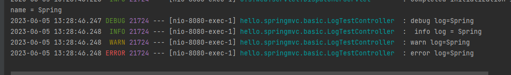 로그 레벨 설정을 변경해서 출력 결과를 보자.