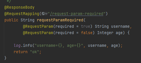 @RequestParam(required = true, defaultValue = "guest") String username,