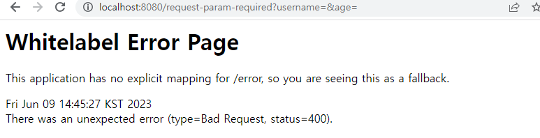 : 필요한 파라미터가 없으면 Bad Request(400)이 발생한다.