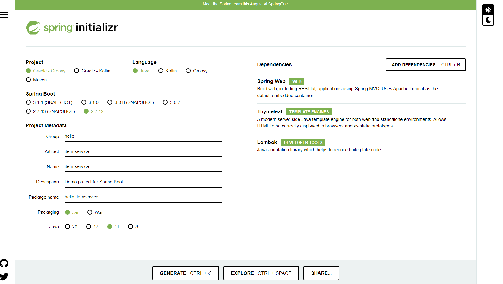 implementation 'org.springframework.boot:spring-boot-starter-thymeleaf'