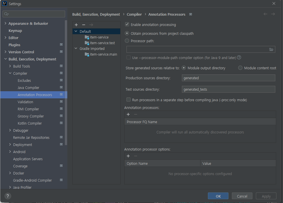Enable annotation processing 체크