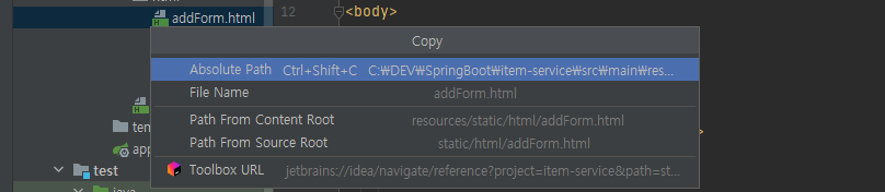 이렇게 정적 리소스가 공개되는 /resources/static 폴더에 HTML을 넣어두면, 실제 서비스에서도 공개된다.