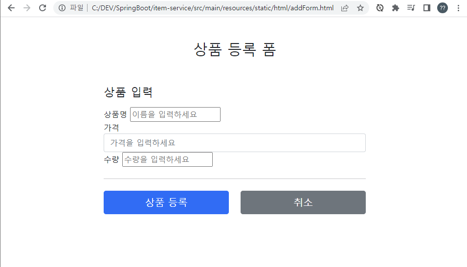그런데 정적 리소스여서 해당 파일을 탐색기를 통해 직접 열어도 동작하는 것을 확인할 수 있다