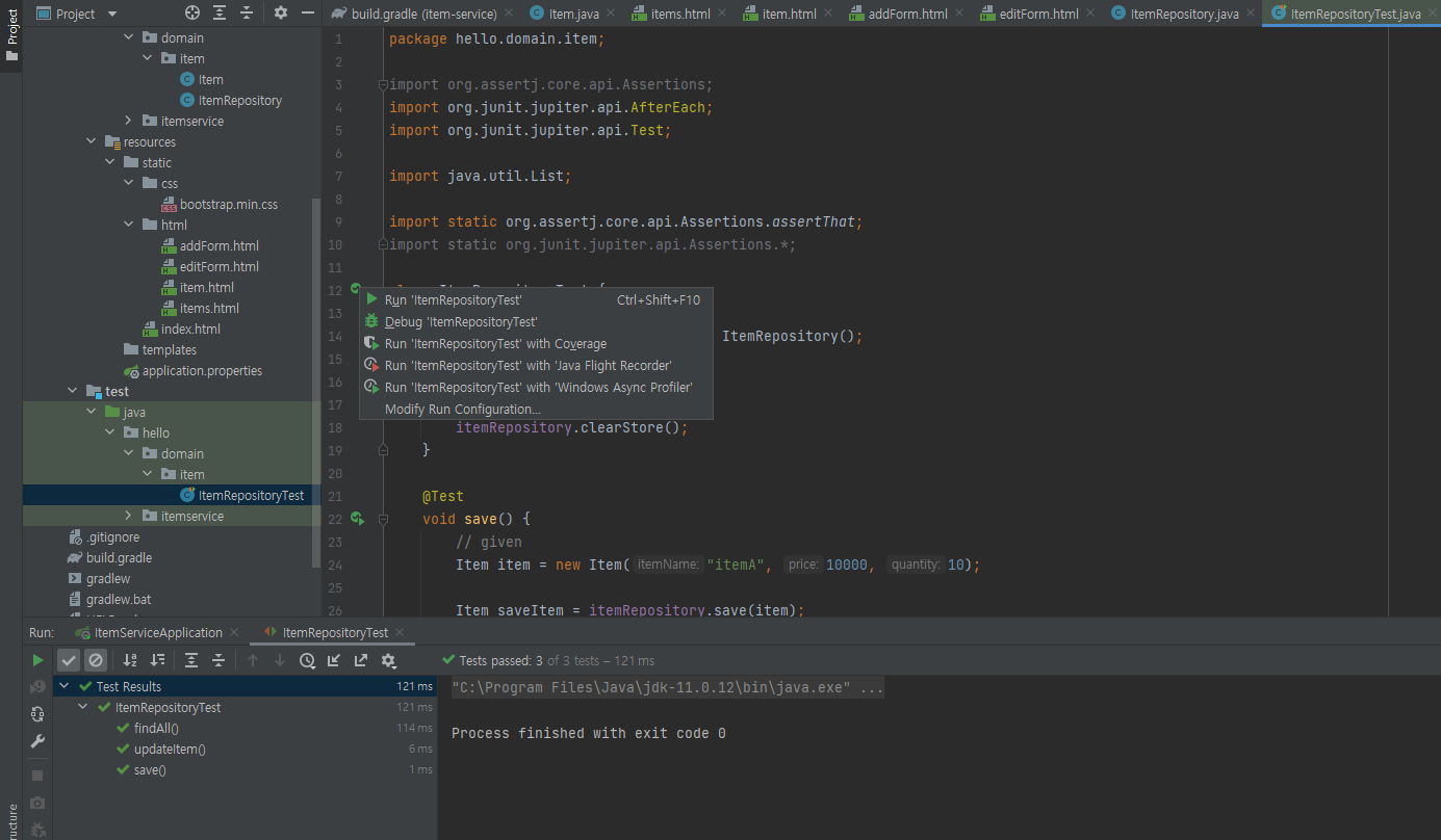 모든 테스트 케이스를 작성하고 테스트를 돌려보고 다 정상적으로 실행되면 된다.