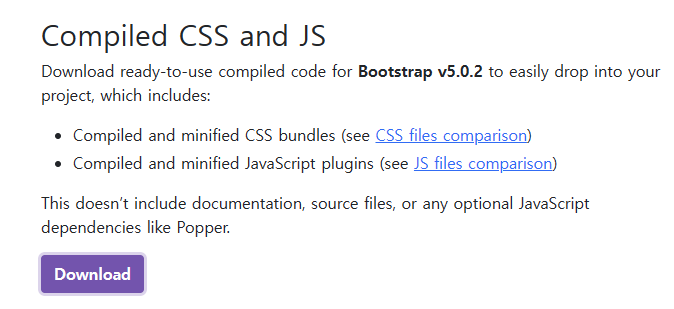 부트스트랩 설치 공식 사이트 : https://getbootstrap.com/docs/5.0/getting-started/download/