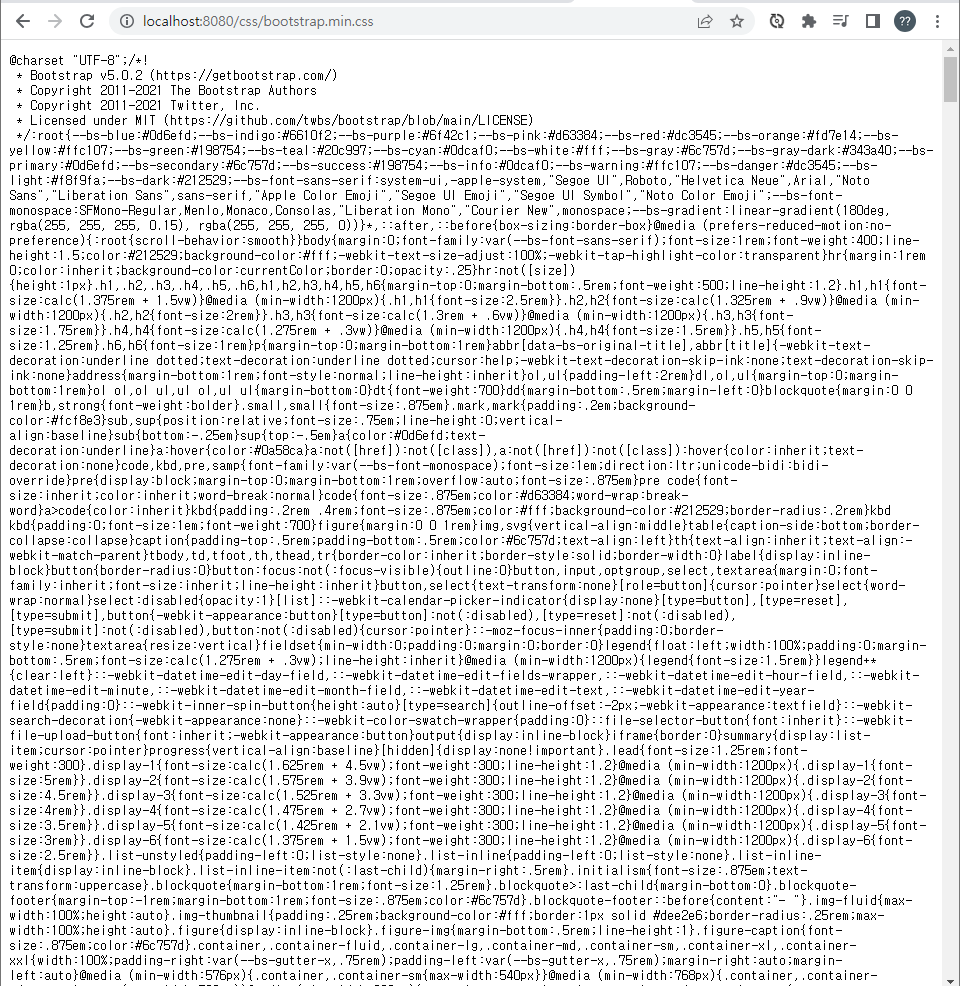 브라우저에 localhost:8080/css/bootstrap.min.css 입력 후 실행해서