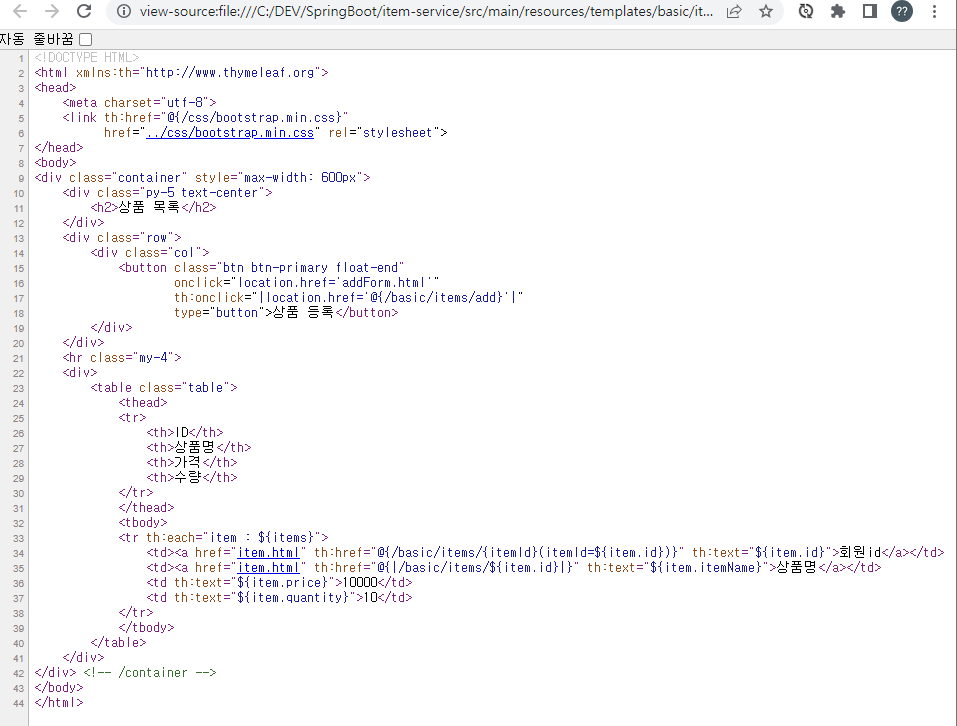 /resources/static/items.html → 복사 → /resources/templates/basic/items.html