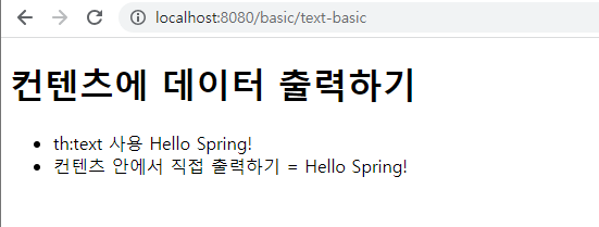 HTML의 콘텐츠(content)에 데이터를 출력할 때는 다음과 같이 th:text 를 사용하면 된다.