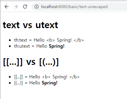 model.addAttribute("data", "Hello <b> Spring! </b>");