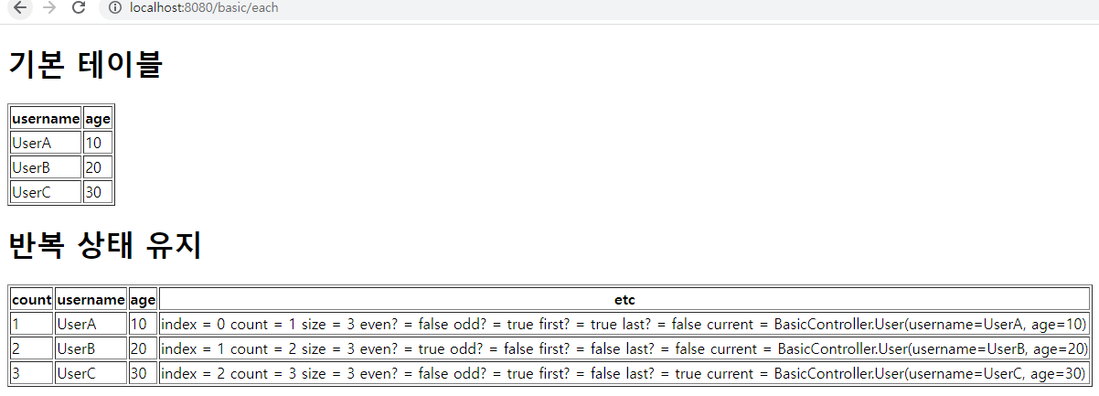타임리프에서 반복은 th:each 를 사용한다.