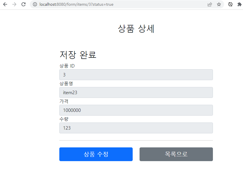 <h2 th:if="${param.status}" th:text="'저장 완료'"></h2>