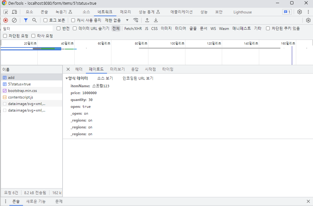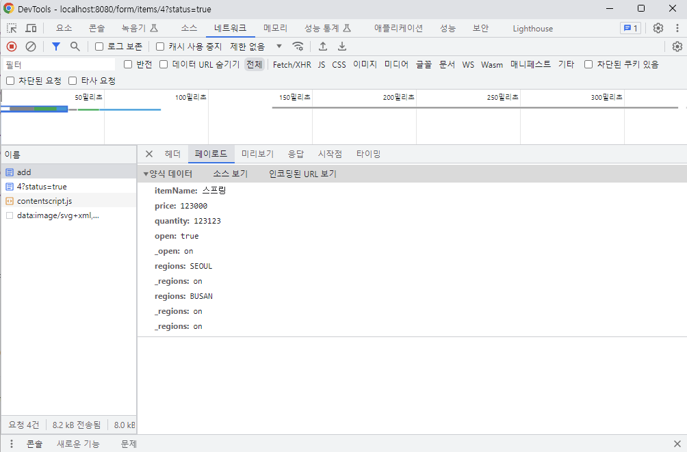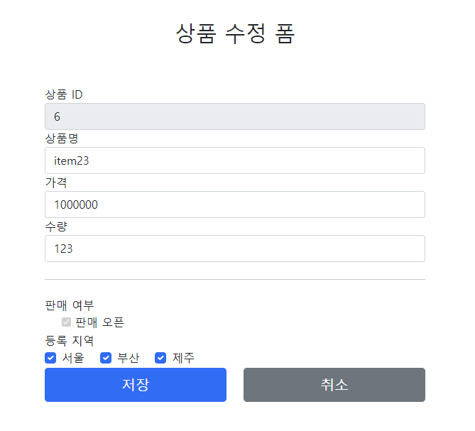 주의: item.html 에는 th:object 를 사용하지 않았기 때문에 th:field 부분에 ${item.regions} 으로 적어주어야 한다.