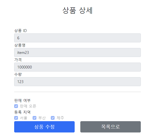등록 폼, 상세화면, 수정 폼에서 모두 서울, 부산, 제주라는 체크 박스를 반복해서 보여주어야 한다.