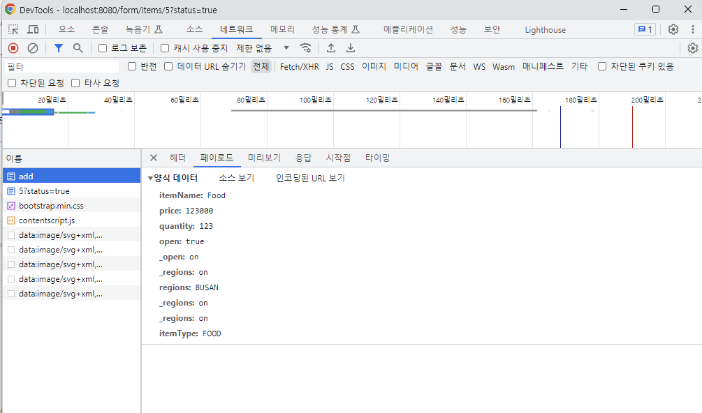 실행 결과, 폼 전송