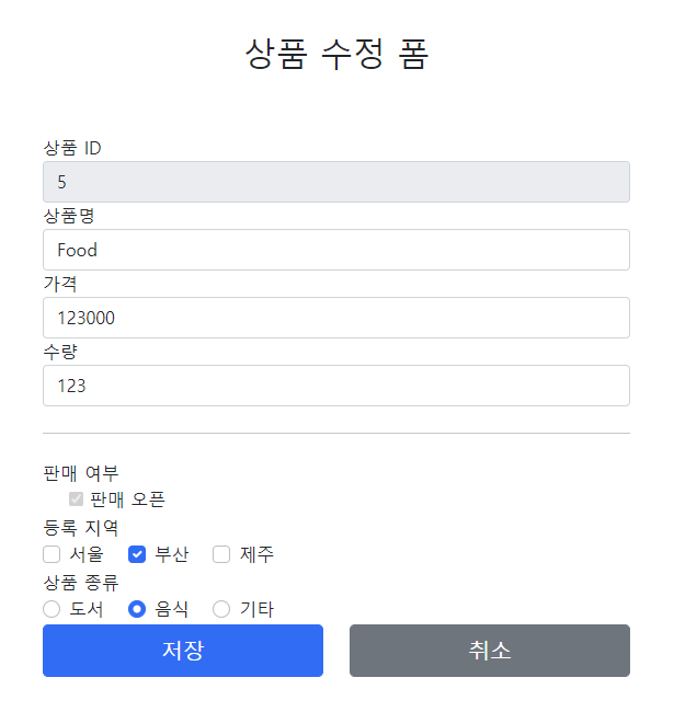 상품 상세와 수정에도 라디오 버튼을 넣어주자.
