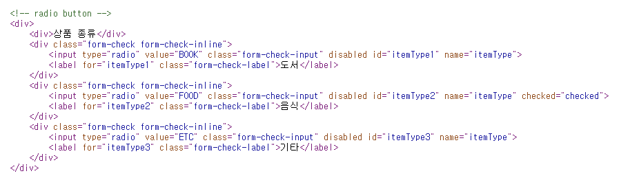 disabled 를 사용해서 상품 상세에서는 라디오 버튼이 선택되지 않도록 했다.