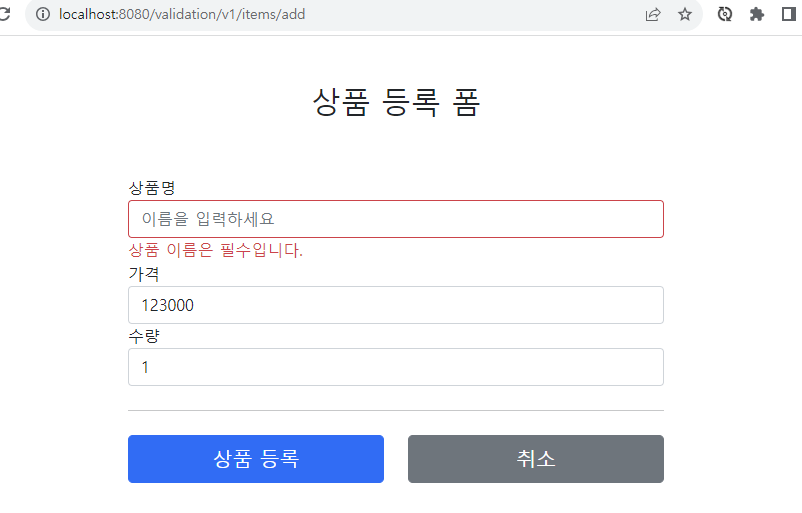 이렇게 검증에 실패한 경우 고객에게 다시 상품 등록 폼을 보여주고, 어떤 값을 잘못 입력했는지 친절하게 알려주어야 한다