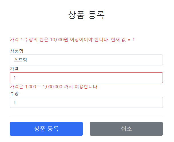 오류 필드명은 동일하게 price를 사용했다.