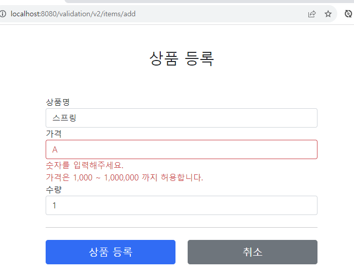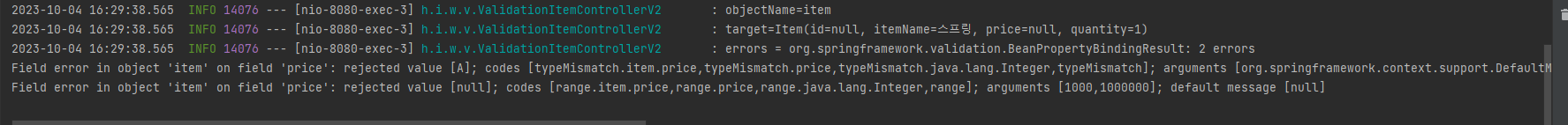 - 스프링이 직접 검증 오류에 추가한 경우(주로 타입 정보가 맞지 않음)