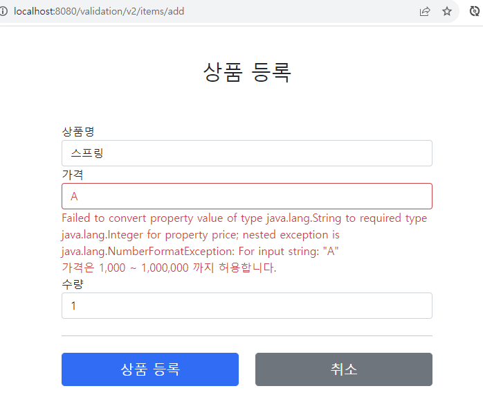 스프링이 직접 만든 오류 메시지 처리 - 타입 오류