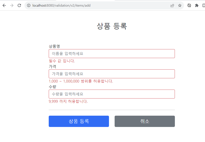 - 개발자가 직접 설정한 오류 코드 rejectValue() 를 직접 호출