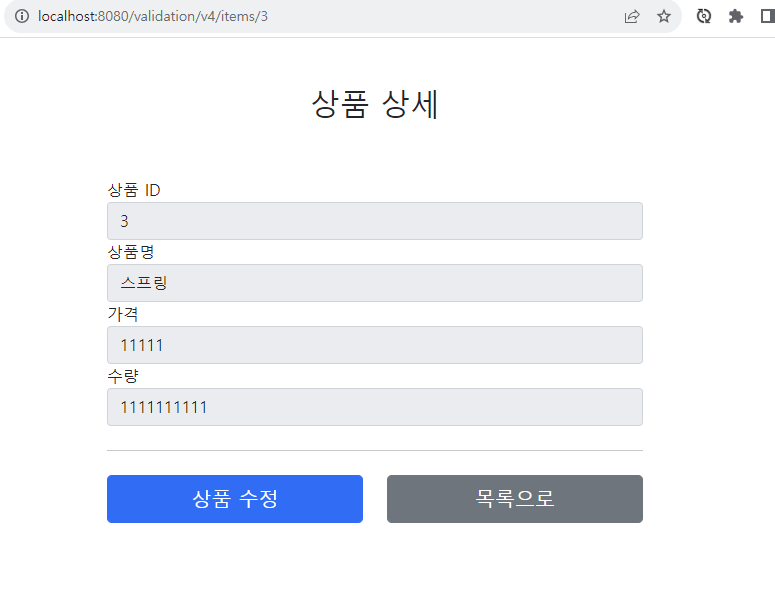 단점: 폼 데이터를 기반으로 컨트롤러에서 Item 객체를 생성하는 변환 과정이 추가된다