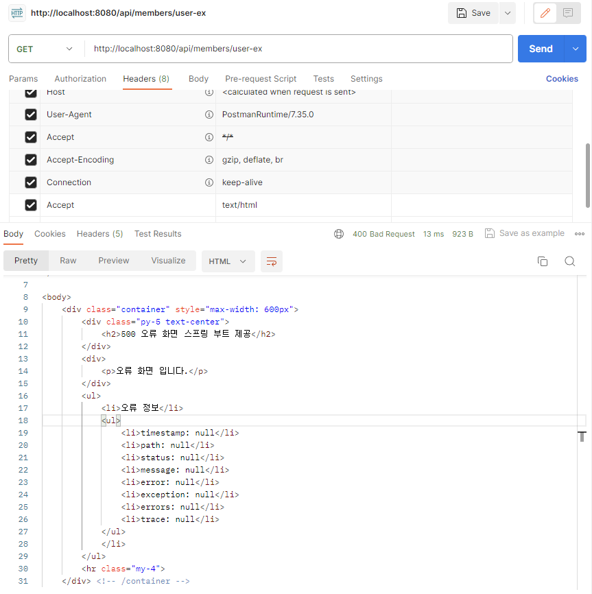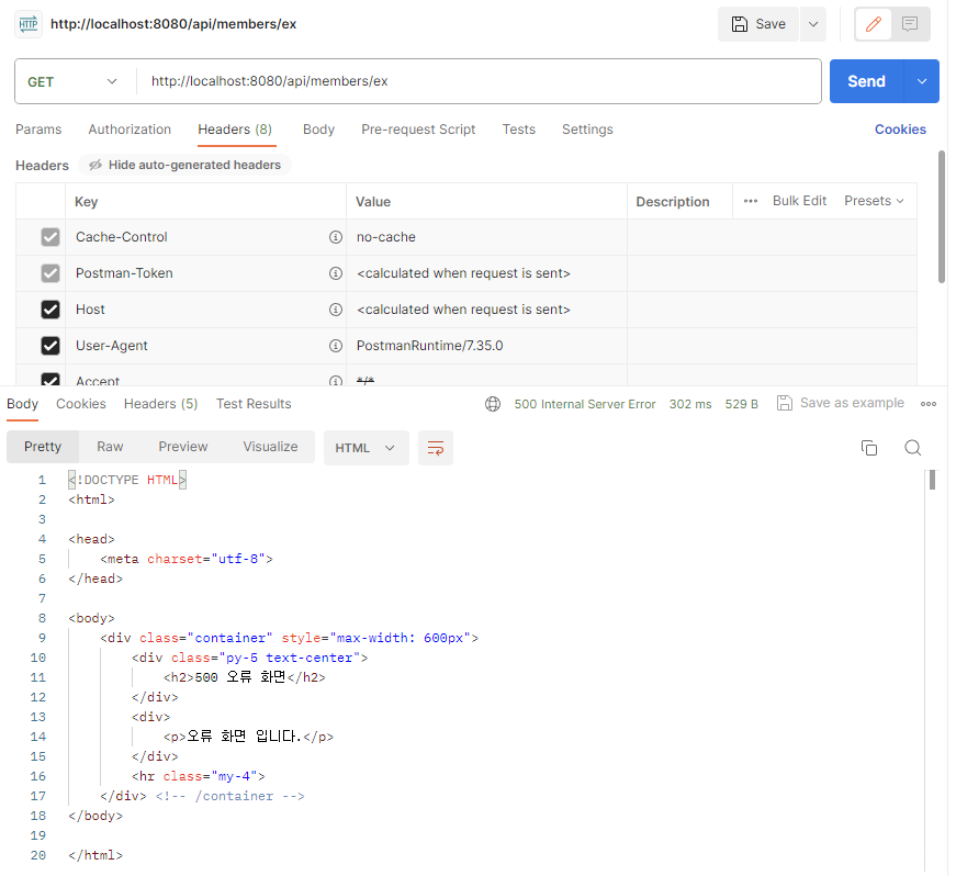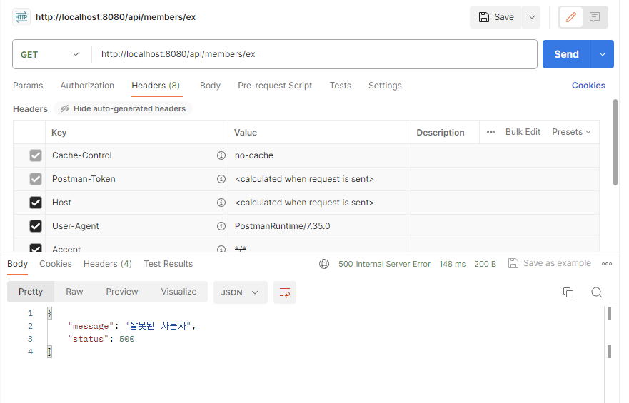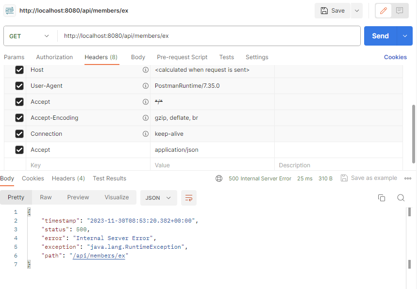 - http://localhost:8080/api/members/ex → HTTP 상태 코드 500