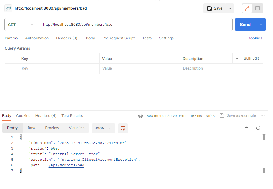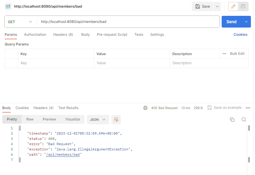 - http://localhost:8080/api/members/bad → HTTP 상태 코드 400