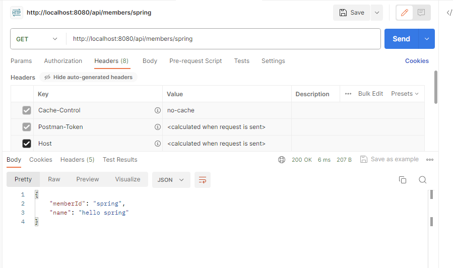 ResponseEntity 를 사용해서 응답하기 때문에 메시지 컨버터가 동작하면서 클라이언트에 JSON이 반환된다.