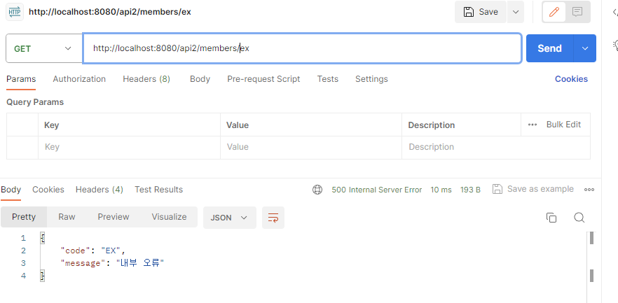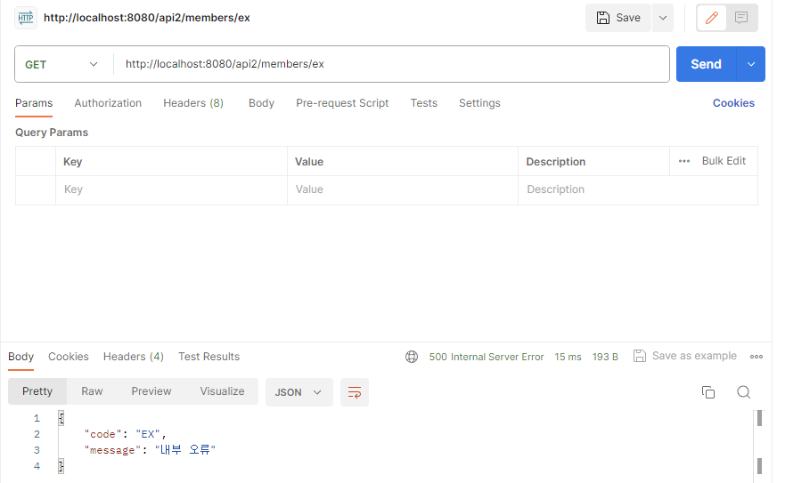 - @ResponseStatus(HttpStatus.INTERNAL_SERVER_ERROR) 로 HTTP 상태 코드를 500으로 응답한다.