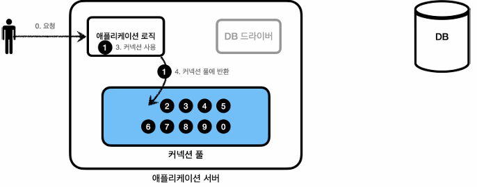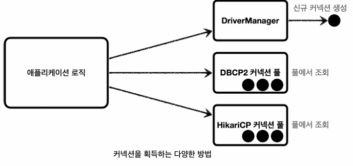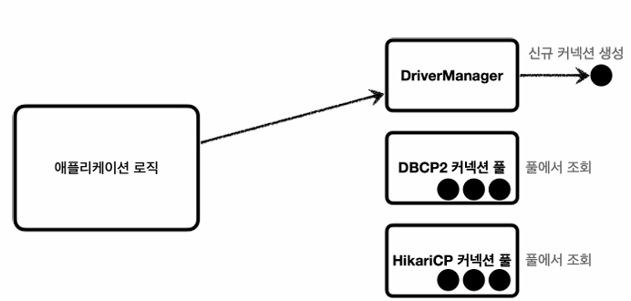 - 애플리케이션 로직에서 이제는 DB 드라이버를 통해서 새로운 커넥션을 획득하는 것이 아니다.