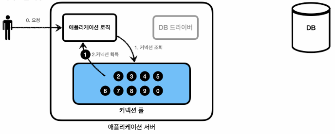 - 커넥션 풀에 커넥션을 요청하면 커넥션 풀은 자신이 가지고 있는 커넥션 중에 하나를 반환한다.