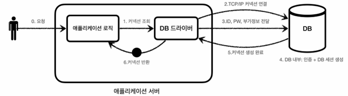 2) DB 드라이버는 DB와 TCP/IP 커넥션을 연결한다.