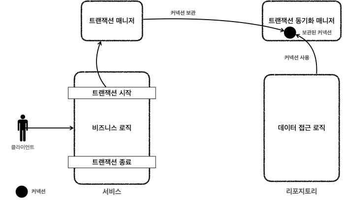 트랜잭션 매니저는 내부에서 이 트랜잭션 동기화 매니저를 사용한다.