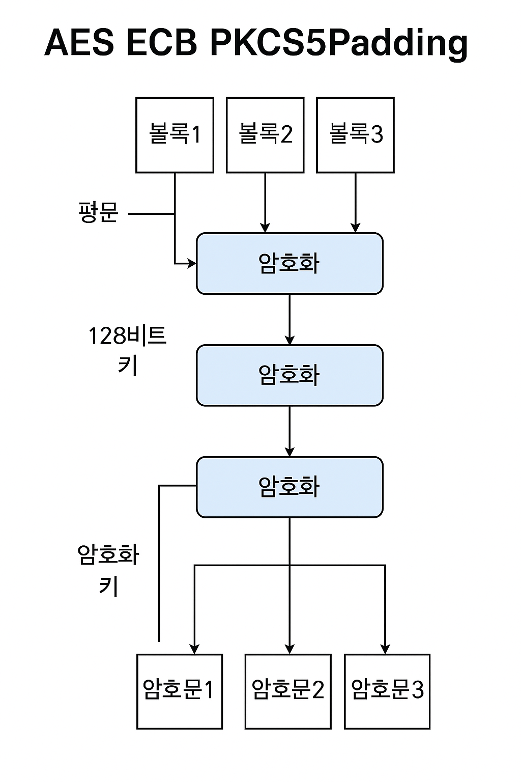 - 이를 보완하기 위해 **패딩(Padding)**이 필요하고, 대부분의 경우 자동으로 처리된다 (PKCS5Padding 등).