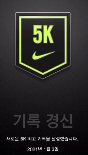 새해 첫날 런닝보다는 5km 달렸을 때 기록이 더 나았나보다