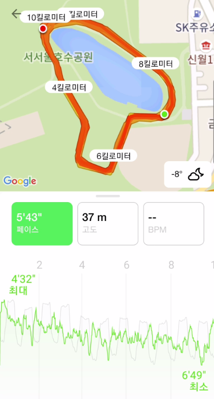 처음 시작할 때 일부러 속도를 줄여가며 뛰었는데