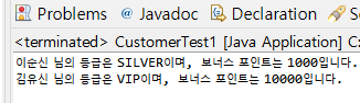 return customerName + " 님의 등급은 " + customerGrade + "이며, 보너스 포인트는 " + bonusPoint + "입니다.";