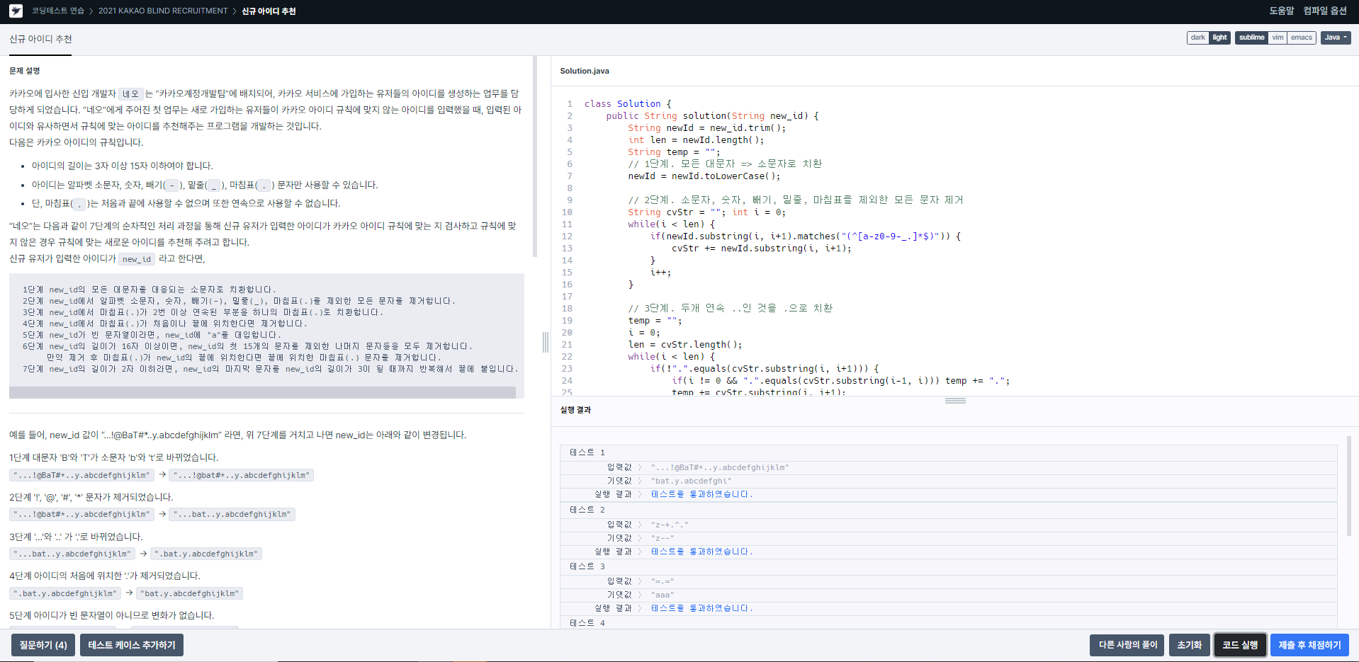 1단계에서 7단계까지 거치는 동안 new_id(123_.def)는 변하지 않습니다. 즉, new_id가 처음부터 카카오의 아이디 규칙에 맞습니다.