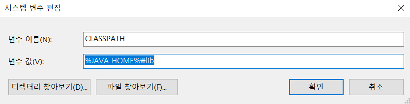 CLASSPATH 변수도 시스템 변수에 추가한다.