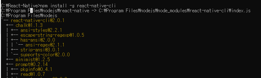 npm install -g react-native-cli 엔터