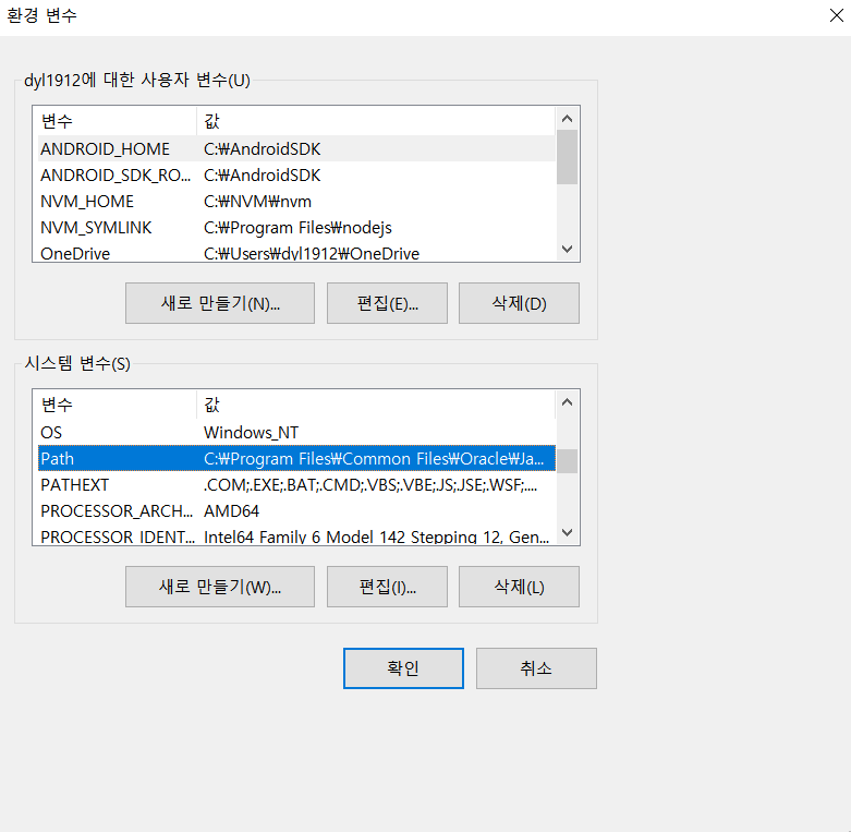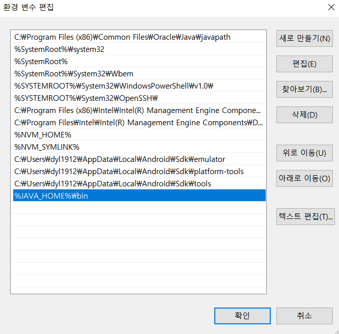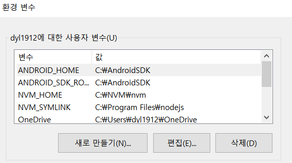 특히 안드로이드 SDK나 NVM 위치는 C드라이브 밑에 폴더를 만들어서 설정하기를 강력히 권장한다.