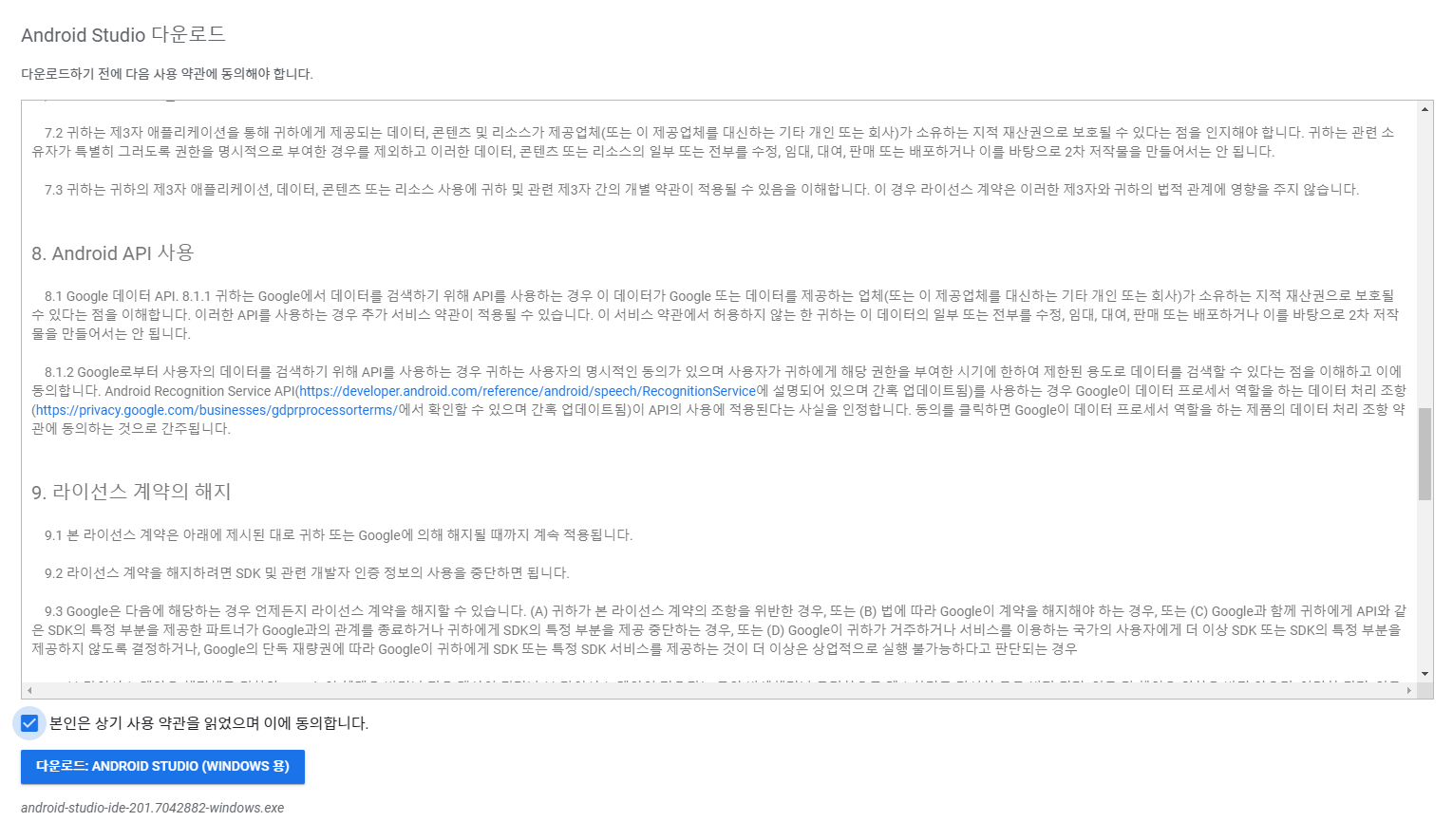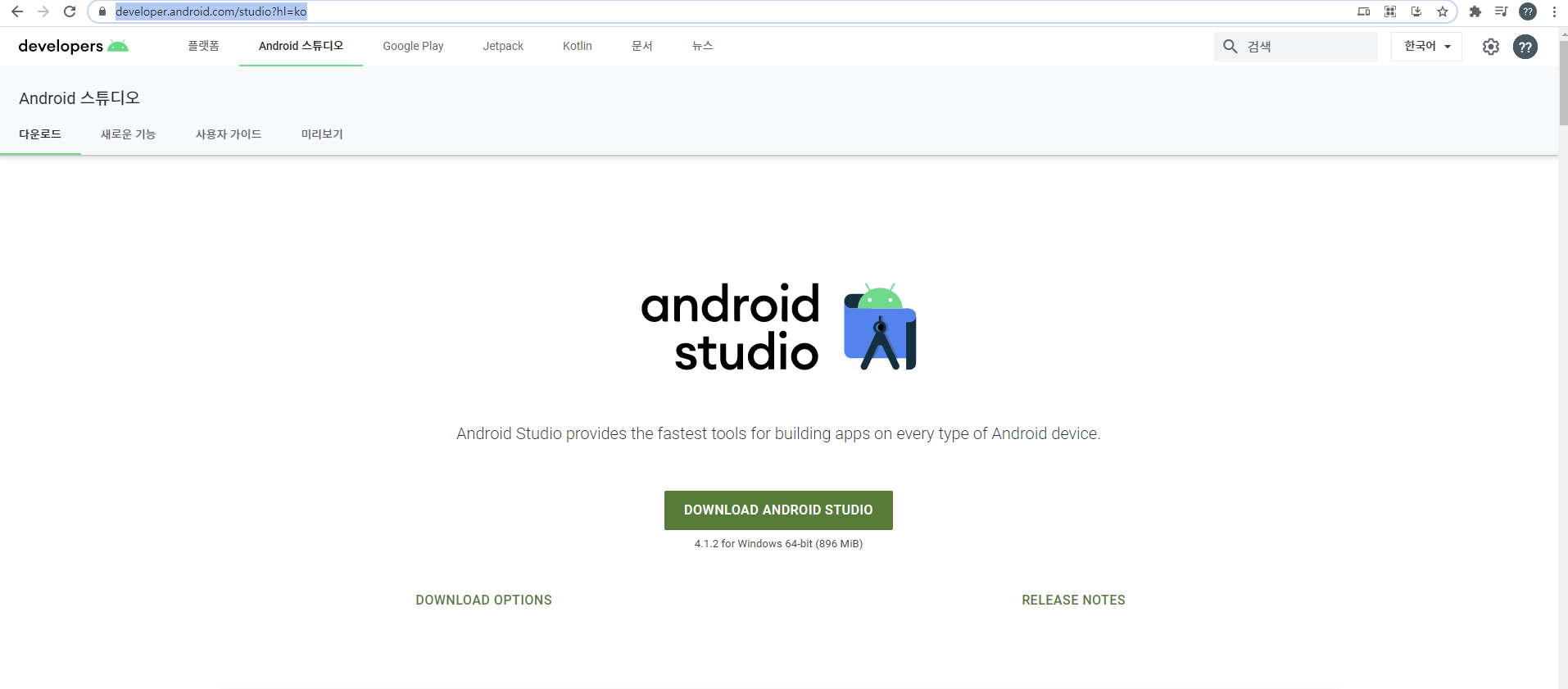 DOWNLOAD ANDROID STUDIO 클릭하여 다운로드