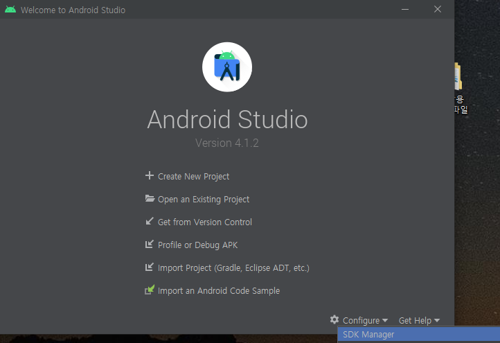 설치가 완료되면 Configure -> SDK Manager 클릭